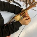 Na výrobu krmítka a zavěšení jedné koule budete potřebovat alespoň 6 přibližně 30 cm dlouhých proutků a přírodní provázek. Používejte proutky čerstvé, lépe se s nimi pracuje. Proutky na jednom konci svažte, umístěte kouli mezi ně a rovnoměrně je rozestavte okolo koule. Svažte k sobě i opačné konce. Vytvořte poutko na zavěšení a zavěste. Krmítko také můžete navléci rovnou na větev. Jak se bude koule zmenšovat, bude propadávat hlouběji do užší části krmítka. Přejeme vám, ať se krmítka zdaří a máte z nich takovou radost, jako měly naše děti!