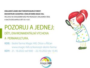 Zveme všechny zájemce, pedagogy na vzdělávací kurz pořádaný na naší farmě.