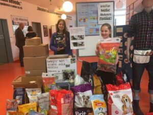 Žákyně 6. třídy v rámci svého dobrovolnického projektu zorganizovaly sbírku pro opuštěné pejsky v psím útulku.