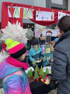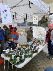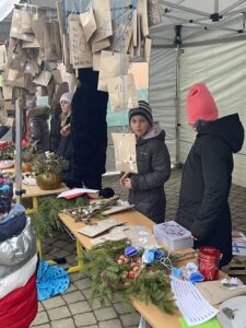Po dopoledních dílnách děti odpoledne prodávaly své dekorace a výrobky a výtěžek byl mimořádný : 135 215 Kč, které věnujeme dvěma nemocným chlapcům.
